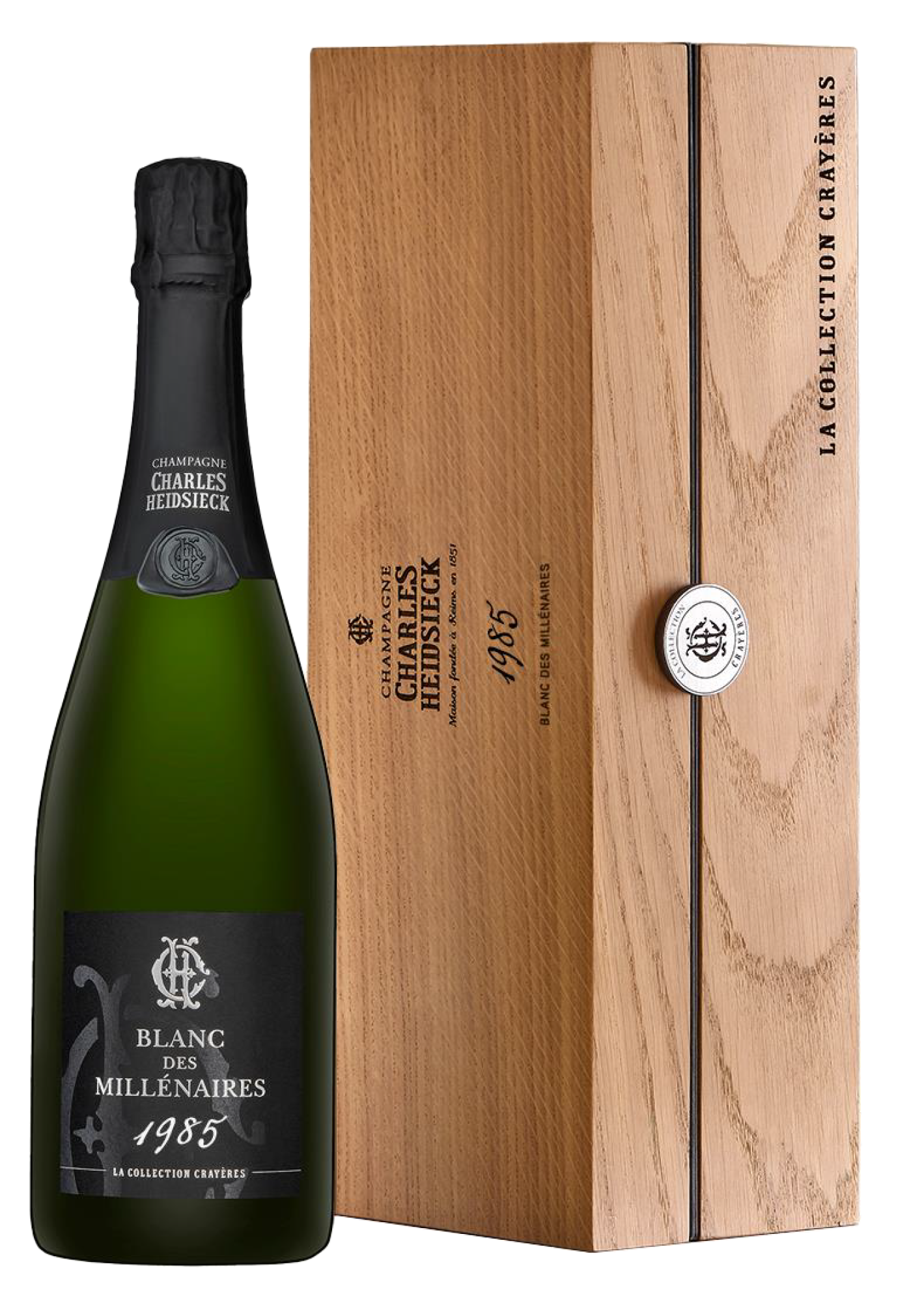 Eenmaal geblend, gebotteld en voor de tweede maal vergist in de fles, rijpte de Champagne nog eens veertien jaar in de schitterende, twee millennia oude crayères van Charles Heidsieck – vandaar debenaming. Het eindresultaat is een Heel Grote Champagne.
